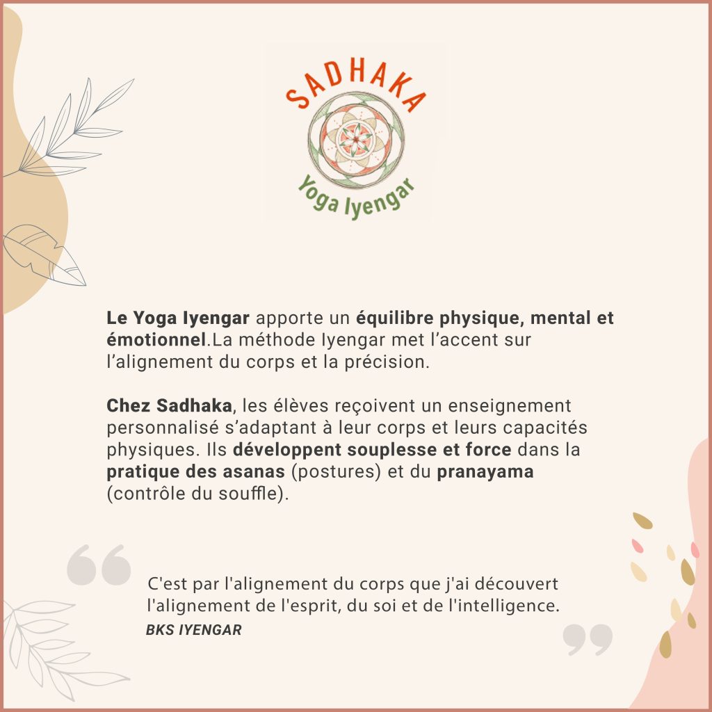Facebook: @sadhakayogaiyengar / Site web : www.sadhakayogaiyengar.com